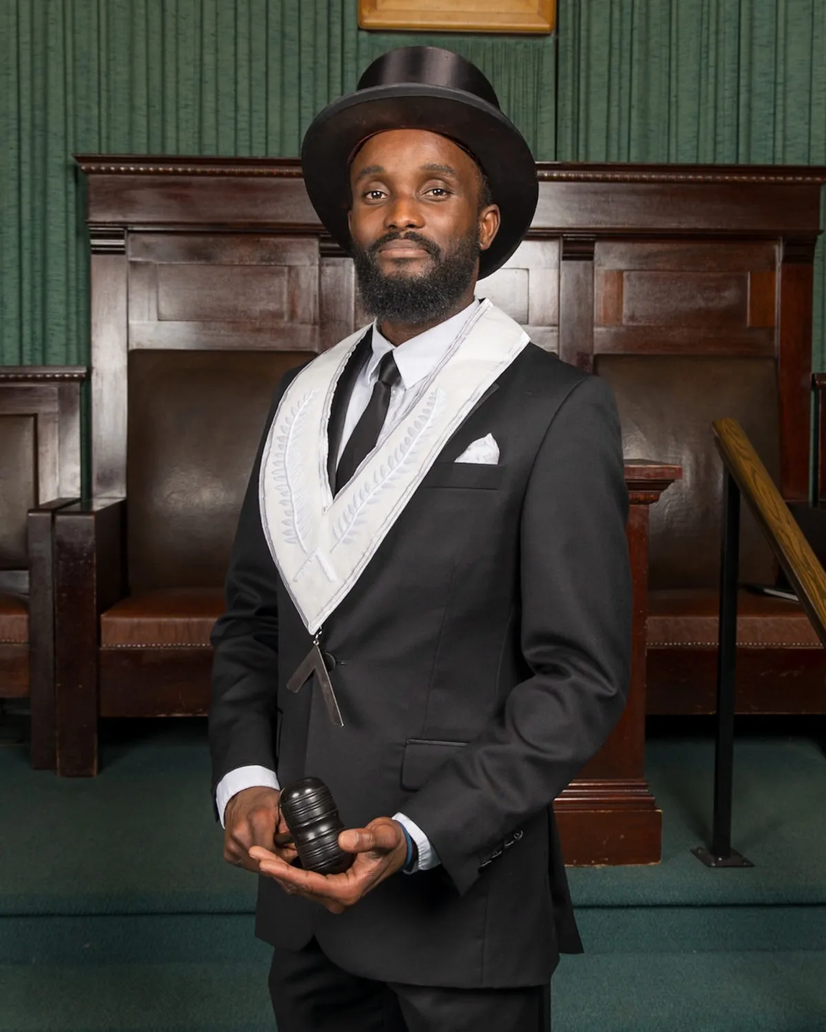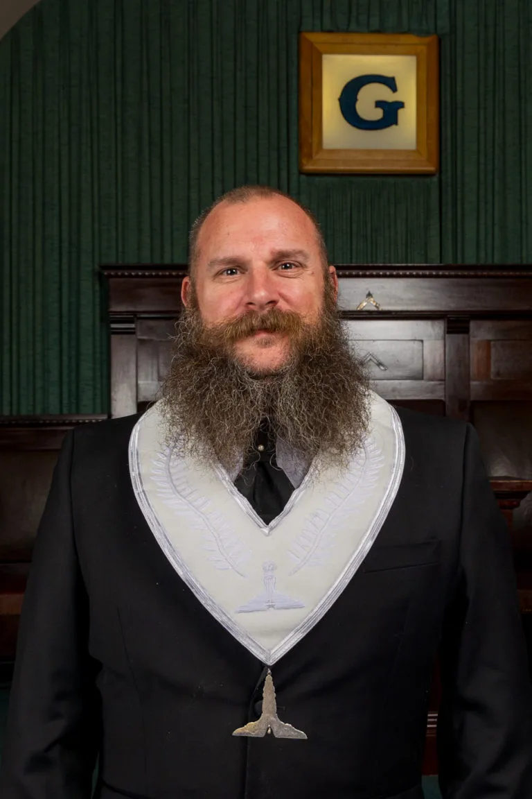 From left to right: Bro. Julius Boatwright (Senior Deacon) / WB John Dimon (Treasurer) / Bro. Mark Beneda (Senior Warden) / WB Celio Santos (Worshipful Master) / Bro. Ethan White (Junior Warden) / WB Brent Marriott (Secretary) / WB Eric BenSalah (Chaplain) / Bro. Matt Warta (Junior Deacon)